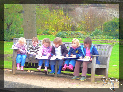 英佬有套超妙法子,能讓這些不受控制的小傢伙,在行進間永遠乖乖走成一路。請注意左邊女老師手上的道具,小朋友一人一個紅色小圈圈,抓牢成縱隊才不會走散唷~