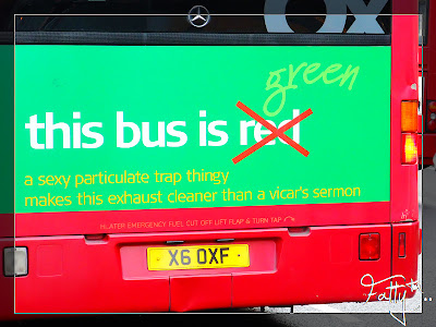 大部分車體都有廣告,其中在牛津鎮發現這個最有創意─紅皮綠骨車。(歐盟對車輛排放廢氣的標準很嚴格)