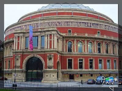 紀念碑對街,是聞名的表演場所─皇家亞伯特大會堂(Royal Albert Hall),每年舉辦的藝術盛會,超過 330 場。1995 年悲慘世界紀念音樂會,就是選在此舉行。